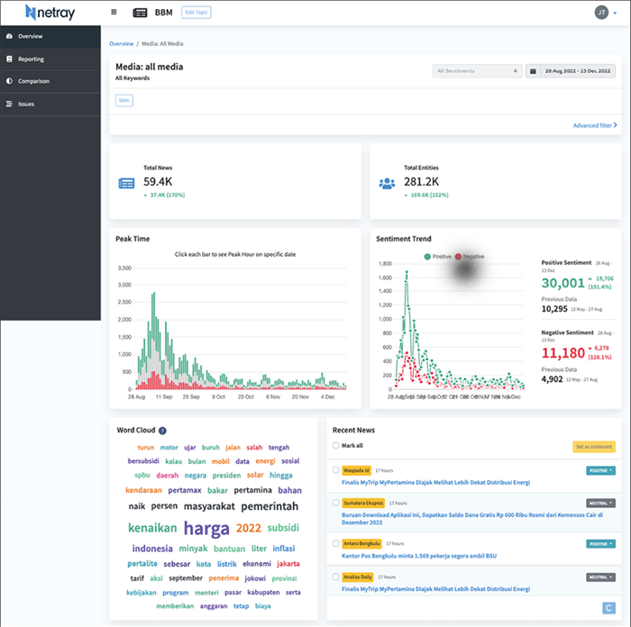 Entity Sentiment Analysis with the Netray Monitoring Tool in Indonesian Online News Media on the Fuel Price Hike