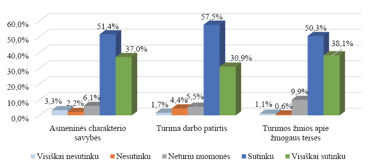 Kiti veiksniai, kurie taip pat stipriai veikė ir skatino tyrimo dalyvių motyvaciją priešintis, buvo jų asmeninės charakteristikos, tarp kurių – asmeninės charakterio savybės, darbo patirtis ir žinios apie žmogaus teises (žr. pav. Nr. 2).