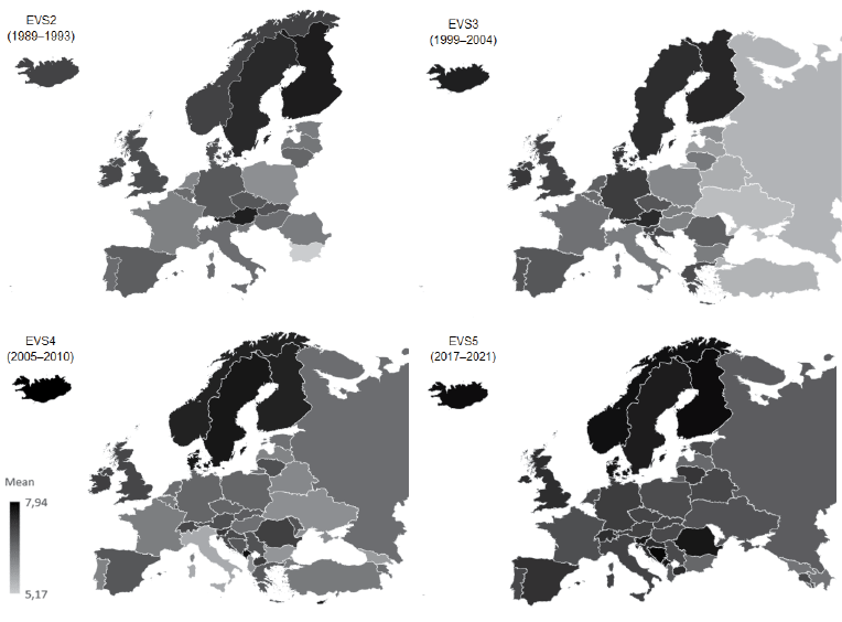 3 More information on the study is available at https://europeanvaluesstudy.eu/. The data file used in the study presented in this paper is publicly available in the GESIS data archive: EVS (2022). EVS Trend File 1981–2017. GESIS, Cologne. ZA7503 Data file Version 3.0.0, https://doi.org/10.4232/1.14021