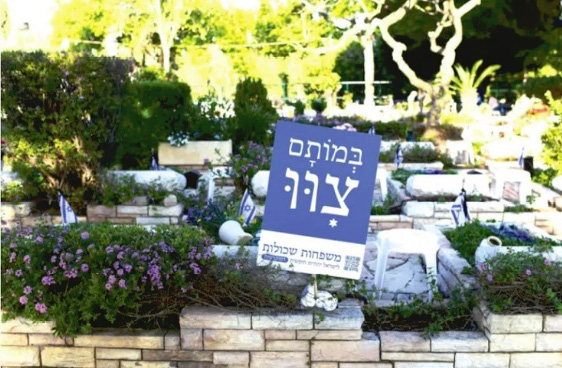 Iconicity is likewise epitomised by leaving unarticulated a syntactic constituent that is anticipated in the specific syntactic construction. As this constituent is neither superfluous nor syntactically recoverable, it does not count as an ellipsis but rather emphasises the void. Displayed physically on the graves of fallen soldiers in military graveyards during the week of Israel’s Memorial Day as part of the anti-reform protests, the wordings in posters [8] and [9] were often displayed alongside a photo commemorating the fallen soldier.