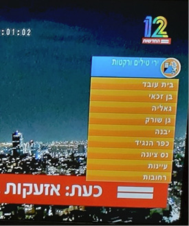 Poster [19], created by the reform opponents, further emphasises these differences between the two camps. The poster’s format mimics the graphic layout and colours used in the Home-Front Command’s televised alerts, which serve to warn the public in real-time of the presumed destination of missiles launched towards Israel, to enable the residents in these locations to seek immediate shelter. However, as seen comparing Fig. 4b (an authentic alert) and Fig. 4a (the poster) instead of the expected use of the lines to display the names of the communities threatened by the oncoming missiles (nine communities in Fig. 4b), succeeding the heading “Home-Front Command Alerts [with its distinctive badge], the poster next says – “Right-wing government” followed by “Full-on”. Poster’s [19] remaining twelve lines repeat the word “full” (Hebrew “male”), iconically, introducing empty speech: