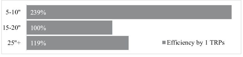Each video durations have different performance due to different message and different quality of contact with consumers. The main tasks of long video are image, building a communication platform. The main task of short videos is maximization of coverage and contacts with the TA. The media response from different video durations for this brand is presented on Figure 7.