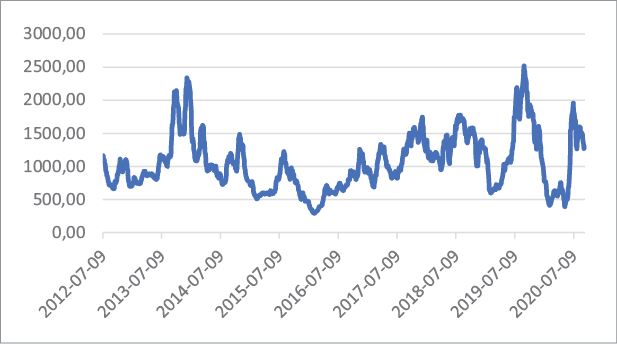 Investing. (2021). Baltic Dry Index. Access Address: https://tr.investing.com/indices/baltic-dry-historical-data (18.03.2021).
