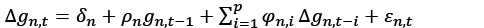 is the t-ratios of the δn estimator obtained by applying ordinary least squares to equation 1 for economy n. If