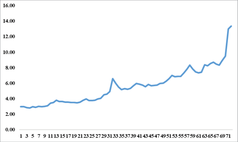 Finally, the changes in the exchange rate of the Turkish Lira against the US Dollar over the years are presented in Figure 3. Accordingly, the exchange rate has tripled from the beginning of 2016 to the end of 2021.