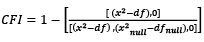 Here, (x20 ) and (df0) indicate the chi-square statistic and degrees of freedom for the baseline model, while (x2k ) and (dfk) represent the chi-square statistic and degrees of freedom for the postulated model, respectively. The Comparative Fit Index (CFI) serves as a normalized fit index, ranging from 0 to 1, whith higher values signifying a better fit. A widely accepted benchmark for a satisfactory fit is a CFI ≥ .95. Shi et al. (2019)