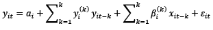 This allows for assessing cointegration between the dependent variable yit and the regressors, x1it, x2it…, xkit. The individual-specific coefficients βit, β1it, β2i,and βkit accommodate potential variations in the connection across entities within the panel.