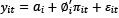This study applies the cointegration tests proposed by Pedroni (2004), Kao (1999), and Johansen (1995) to analyze the relationships among the series. Pedroni (2004) recommends calculating the test statistic by taking the first difference of equation 5 and performing cointegration analysis on its residuals. The error term is then estimated using the first autoregressive process as follows: