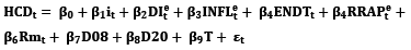 where HCDt is household credit demand, it the real interest rate, DIte the expected disposable income, INFLte the expected inflation rate, ENDTt the indebtedness ratio, RRAPte the expected residential real estate price index, Rmt remittances, T a linear trend, and D08 and D20 are dummy variables indicating the impact of the 2008 and the COVID-19 crises, respectively