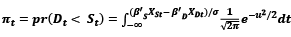 Since Qt can be assigned to the demand equation with probability πt and to the supply equation with probability 1 – πt, and given fD(Dt) and fS(Dt) the marginal density functions, and FD(Dt) and FS(Dt) the cumulative probability functions of demand and supply, respectively, the unconditional density of Qt is