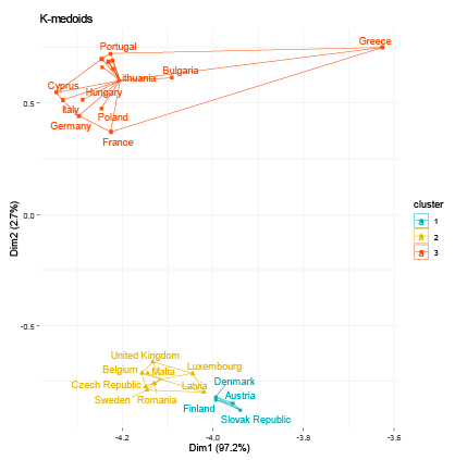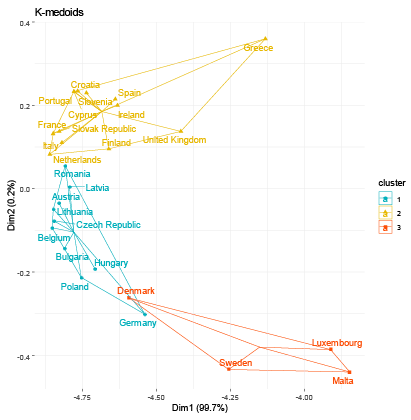 Note: *Country is the center of the cluster (medoid). Countries in bold are currently part of the Eurozone.