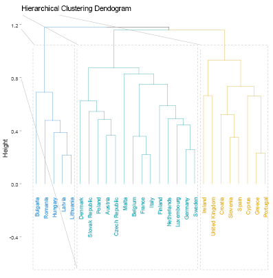 Figure 7. Hierarchical Average Linkage for EU: industrial variables