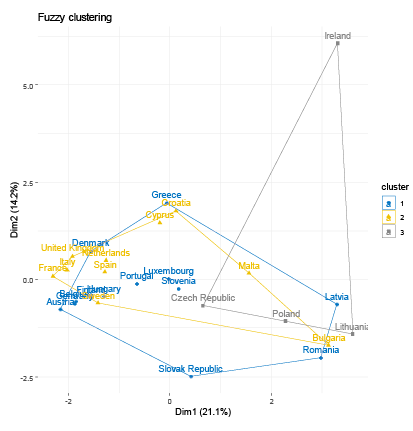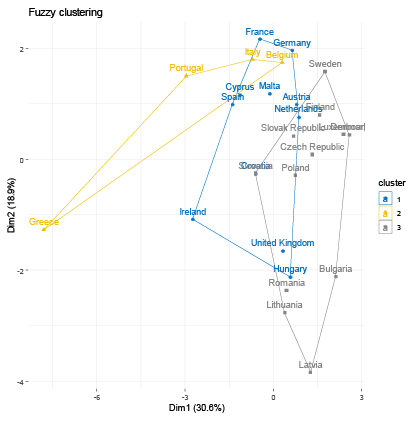 Figure 4. Fuzzy clustering for EU: nominal variables