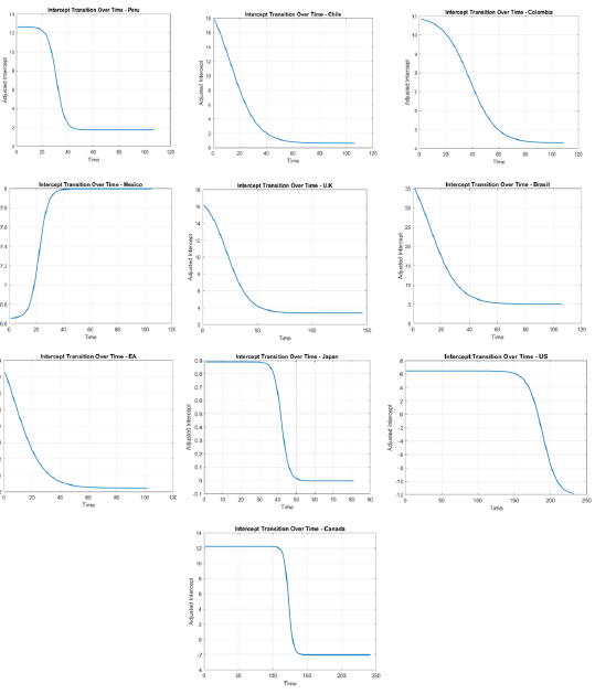 The relationship between inflation targeting (IT) and interest rates has been the subject of extensive research, yet the evidence remains mixed. For instance, Fouejieu and Roger (2013) explore how IT influences cross-country interest rate spreads in both emerging and advanced economies. By using a dynamic panel data approach and system GMM to address endogeneity, they find that IT leads to a decline in country risk premium spreads, particularly under conditions of a reduced political uncertainty.