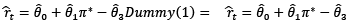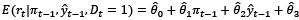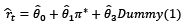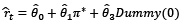 is the output gap (defined as the percentage difference between the output and its long-term trend level). Central to our analysis is the introduction of a dummy variable, Dt, which takes the value of ‘1’ during the inflation targeting period and ‘0’ otherwise. This allows us to capture the effects of both the inflation targeting period and the preceding monetary policy regimes.