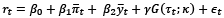 where rt is the nominal interbank interest rate, π is the inflation rate gap, while