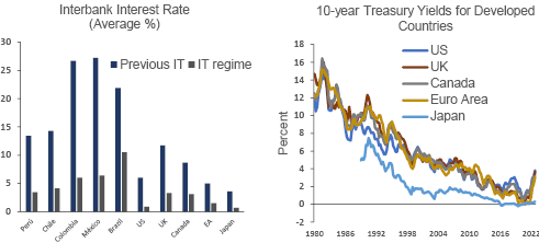 Understanding whether IT has been an important factor in the falling rates becomes fundamentally important because it would demonstrate the effectiveness of inflation targeting as a monetary policy tool to promote not only price stability but also more favorable financial conditions. Practically, this could support the credibility and confidence in the monetary policies implemented by the central banks that adopt these targets.