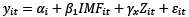 In both equations, the index i signals the country and t stands for the time period (years in our case). y denotes one of the five dependent variables (GDP, HDI, School, Life, or Mortality). α represents the common or individual intercept, while β1 and γx are the coefficients for IMF loans and the control variables (GCF, Education, Trade, Price, FDI and Population), respectively. It should be noted that x ranges from 1 to 6 in line with the responses to be estimated for each of the six control variables. Finally, εit measures the error term.