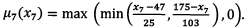 It is more convenient to use the expression of the triangular fuzzy membership function to solve the optimization problem (see Formula 3).