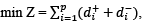 where Z is a function of minimization of deviation from relevant objectives,