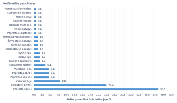 3 pav. Medžių įvairovės procentinė dalis teritorijoje