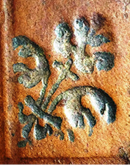 „Gėlė“57 (įspaudo aukštis58 16 mm, plotis 15 mm; sąrašo nr. 7). Šis įspaudas įspaustas aplink superekslibrisą „Angeliukas“, veidrodžio kampuose, įrišant knygą Krokuvoje 1555 m.