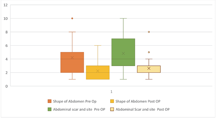 Figure 3. EuraHS-QoL cosmetic outcome scores pre- and post- mesh hernioplasty