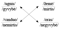 Interpretuojant gamtos figūras pagal jų ideolektinį įsivaizdavimą semantinis universumas susidėsto taip: