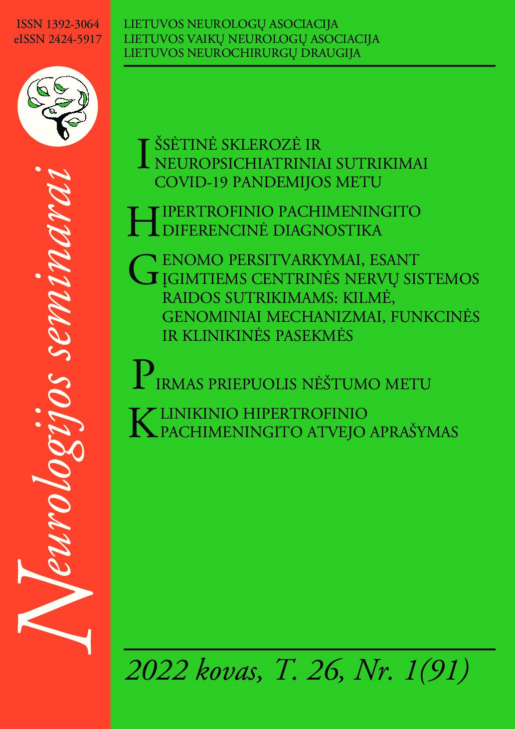 Naujai atsiradę priepuoliai nėštumo metu yra reta, bet gana sudėtinga situacija. Priepuoliai nėštumo metu atsiranda dėl priežasčių, kurias galima priskirti trims kategorijoms: anksčiau diagnozuota arba naujai atsiradusi epilepsija, naujai atsiradę priepuoliai dėl su nėštumu nesusijusių būklių ir nėštumui specifiškos arba dažnai nėštumo metu pasitaikančios būklės, ypač eklampsija. Elektroencefalografija (EEG) ir neurovizualiniai tyrimai padeda diferencijuoti šias būkles. Tačiau nėščių pacienčių, patiriančių priepuolius, neurovizualiniai tyrimai ir gydymas kelia daug iššūkių, kadangi trūksta su nėščiomis moterimis atliktų klinikinių atsitiktinių imčių tyrimų. Straipsnyje pateikiame klinikinį atvejį, kai 31 metų 29-ą savaitę pirmą kartą nėščiai moteriai buvo diagnozuota naujai atsiradusi epilepsija, pasireiškusi abipusiais toniniais-kloniniais traukuliais ir EEG fiksuotu lėtu patologiniu aktyvumu, be neurologinio deficito ar anomalijų magnetinio rezonanso tyrime.