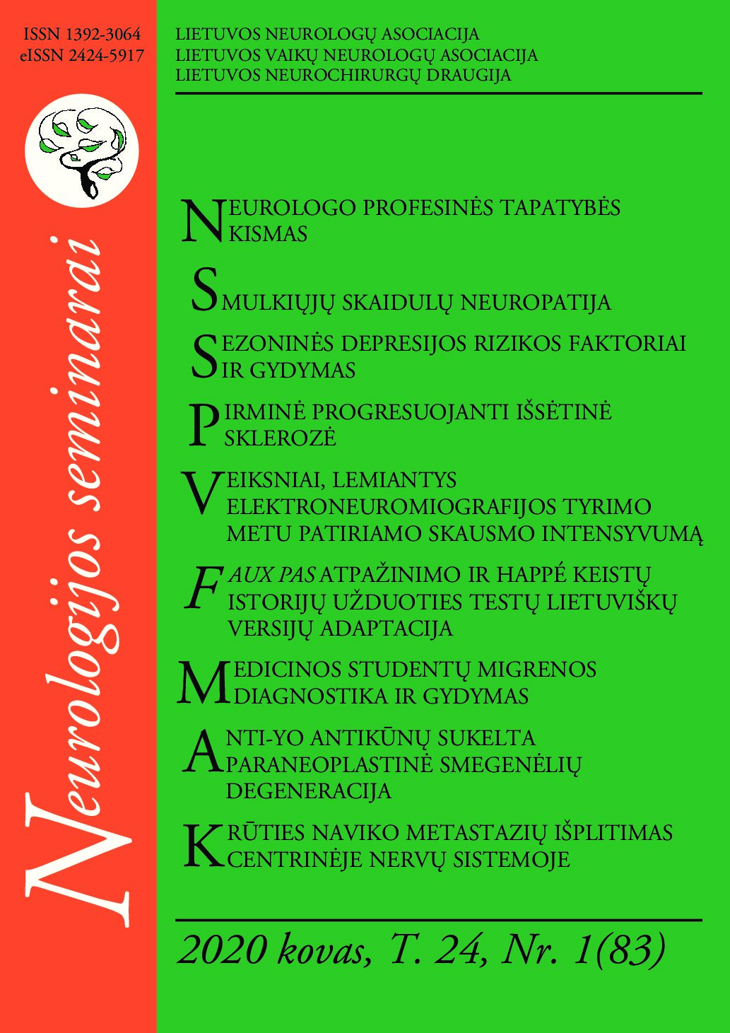 Veiksniai, lemiantys elektroneuromiografijos tyrimo metu patiriamo skausmo intensyvumą