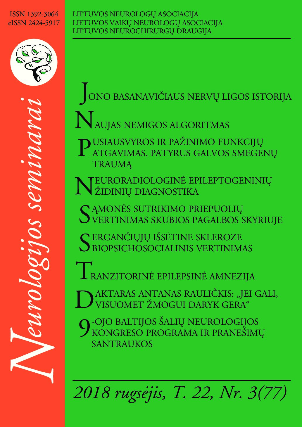9th Baltic Congress of Neurology. September 6-8, 2018, Kaunas, Lithuania Scientific program and abstracts