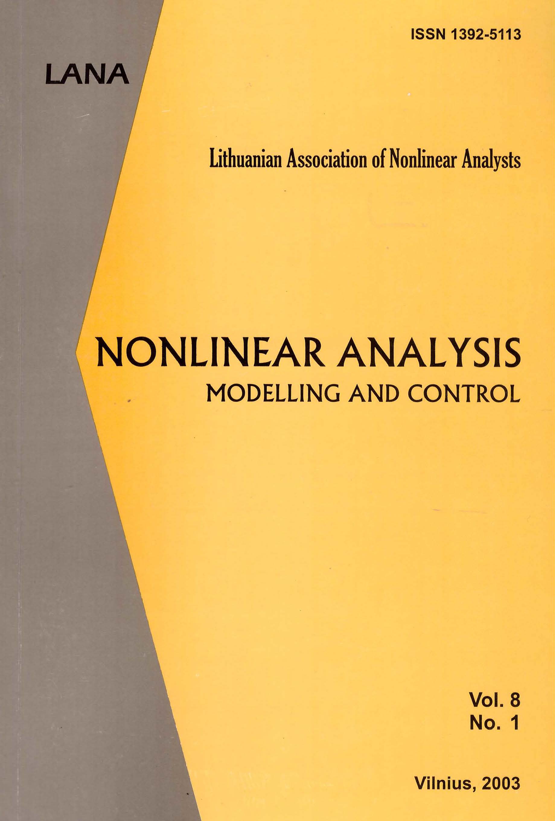 Vol. 8 No. 1 (2003): Nonlinear Analysis: Modelling and Control