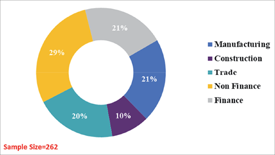 The field survey of a sample comprising 262 CEOs (business leaders) was polled between September and December 2020. The sample broadly represents Kuwait’s overall business leaders in terms of size of business companies, paid-up capital and broad industrial and sector classifications. The response rate was 66% (262 firms out of 397 targeted firms). Due to the COVID-19 partial lockdown and restrictions, different data gathering approaches were utilized, although the objective was to conduct face-to-face interviews. The additional approaches included telephone interviews and an online questionnaire while maintaining the same contents of topics discussed in the interview questions. The interviews were conducted with CEOs or senior managers.