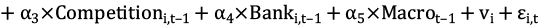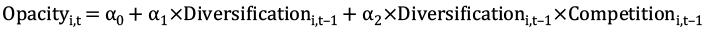 We also take an extra step to shed more light on our findings by exploring how the effects of bank diversification on opacity depend on bank competition. To this end, we extend our baseline model to include an interaction term as follows: