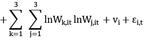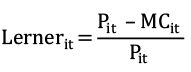 where P is the output price, computed by the ratio of total revenues to total assets, and MS is the marginal cost, obtained by regressing the following translog cost function: