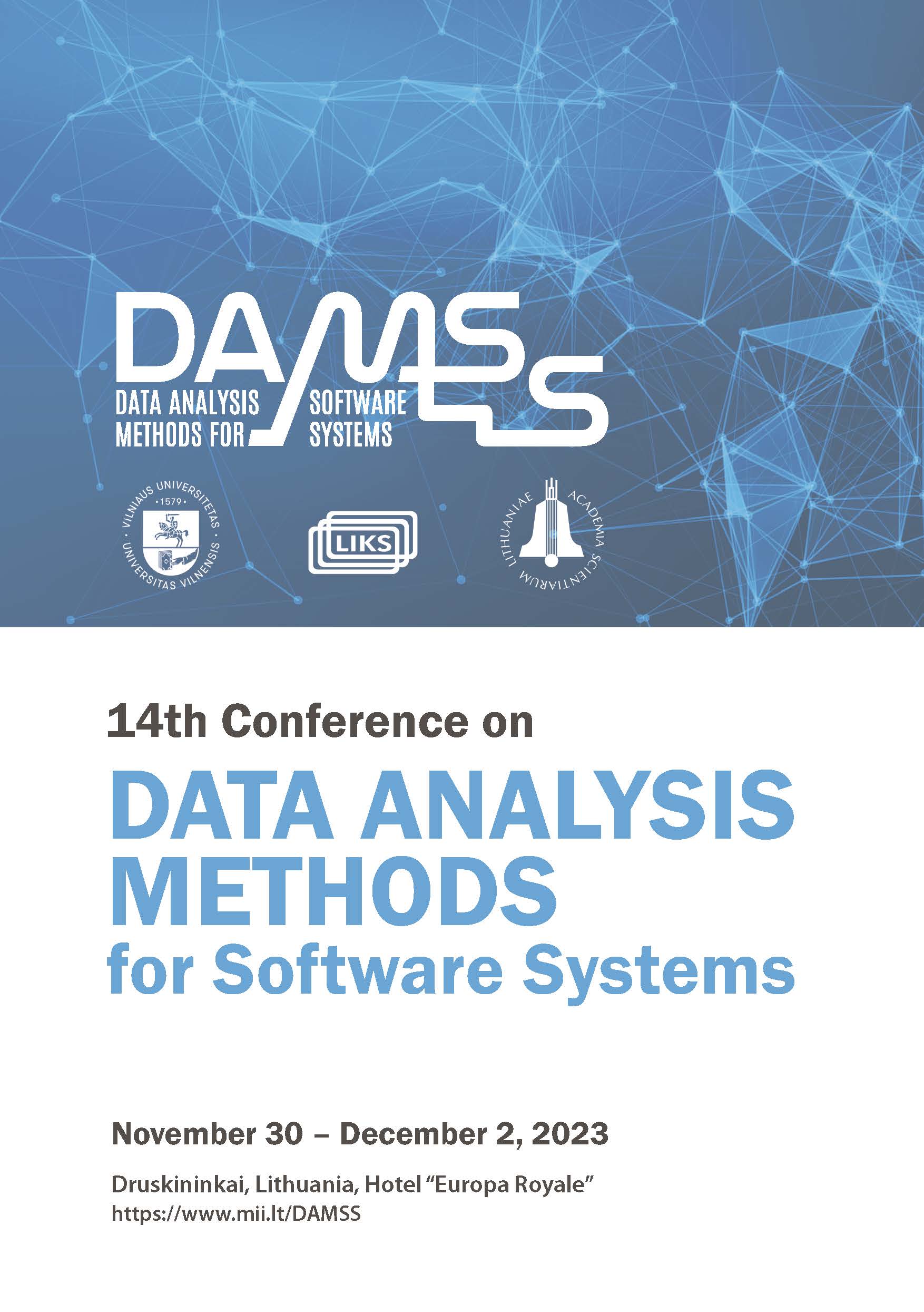 DAMSS-2023 is the 14th International Conference on Data Analysis Methods for Software Systems, held in Druskininkai, Lithuania. Every year at the same venue and time. The exception was in 2020, when the world was gripped by the Covid-19 pandemic and the movement of people was severely restricted. After a year’s break, the conference was back on track, and the next conference was successful in achieving its primary goal of lively scientific communication. The conference focuses on live interaction among participants. For better efficiency of communication among participants, most of the presentations are poster presentations.