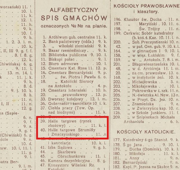 На польском плане города Вильно 1935 г. рыночная площадь названа Hale (см. рис. 6), в указателе к плану этот же объект под номером 148 назван Hale Targowe.