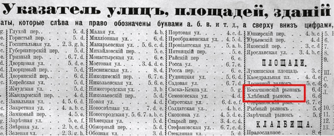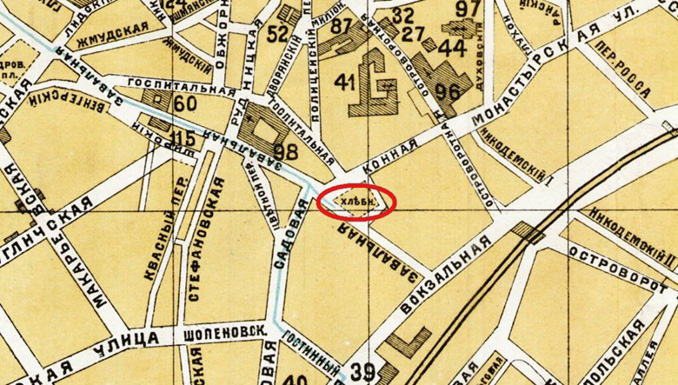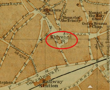 На плане 1914 г., где названия в основном транскрибируются посредством английской графики, фигурирует то же название: Khlyebni Pl[ac] (см. рис. 5).