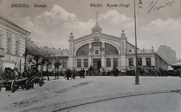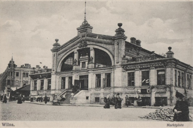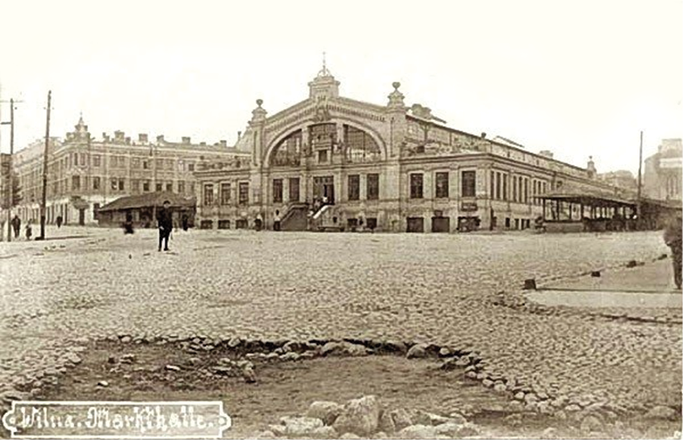 В начале ХХ в. начинается история собственно виленского крытого рынка, функционирующего по сей день. В 1904−1906 гг. по проекту инженера-архитектора Вацлава Михневича на Хлебном рынке было возведено одноэтажное кирпичное рыночное здание зального типа, получившее название Hala5 (польск. hala от многозначного нем. Halle) с семантикой ‘зал специального назначения, павильон, крытый рынок’. Новое здание, поражавшее современников своими не только строительными, но и конструктивными решениями, предоставило как торговцам, так и покупателям невиданные ранее удобства: в павильон был проложен водопровод, там было электрическое освещение, оборудован ледник для хранения мяса, имелся общественный туалет. По технической оснащенности виленский торговый павильон ничем не уступал построенным почти в то же время (1899−1901) варшавским павильонам-близнецам — Hala Mirowska и Hala Gwardii. Естественно, новое торговое сооружение — Halle — стало главным акцентом старого виленского рынка. По нему и стали называть прежний Хлебный (польск. Zbożowy) рынок. Однако новое название прижилось не сразу, что отражают, в частности, городские планы различного времени.