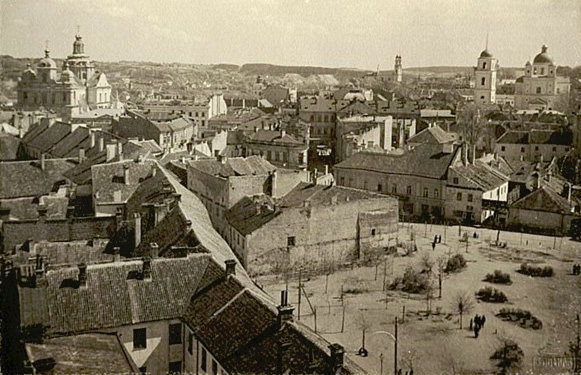 Рис. 1. Ян Булгак. Площадь Босаки (Basokų aikštė). Вид с колокольни костёла Всех Святых. 1917 г.