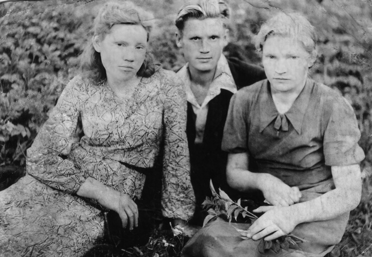 2. Mingėlų seserys ir brolis Antrojo pasaulinio karo metais (iš kairės): Teodora, Laurynas, Ona. Iš I. Pakutinskaitės-Čiumakovos albumo