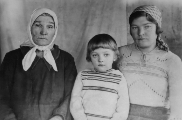 4. Prieš Teodorai Mingėlienei ir jos vaikaitei Irenai vykstant į Lietuvą (iš kairės): Teodora, Irena ir Ona. Iš I. Pakutinskaitės-Čiumakovos albumo
